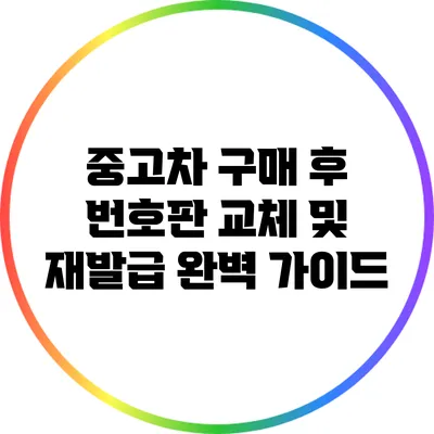 중고차 구매 시 번호판 교체 및 재발급은 차 ownership에 필수적이에요. 정확한 절차를 따르는 것이 중요하며, 준비해야 할 서류와 수수료를 미리 확인함으로써 불필요한 시간이 지연되지 않도록 해야 해요. 안전한 차량 소유를 위해 오늘 당장 번호판 관련 준비를 시작해보세요! 각 서류와 절차를 소중히 여기며, 규정을 준수하는 것이 차량 소유의 첫걸음이라는 점을 기억하는 것이 중요해요.