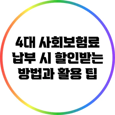4대 사회보험료를 납부할 때 받을 수 있는 다양한 할인 혜택이 있어요. 이를 활용하면 비용을 절감할 수 있습니다.
