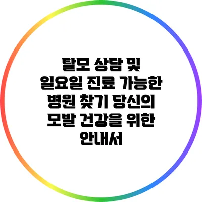 탈모는 단순한 미용 문제가 아니라, 개인의 자존감과 생활의 질에 영향을 미치는 중요한 문제입니다. 따라서 탈모 상담과 치료를 위한 적절한 병원을 찾는 것이 중요해요. 여러 치료 옵션이 존재하므로 전문가와 상담을 통해 나에게 맞는 최선의 방법을 찾아보는 것이 필요해요. 일요일에 진료하는 병원도 쉽게 찾을 수 있으니, 주말을 활용해 치료를 시작해보세요. 여러분의 모발 건강은 소중하니까요!