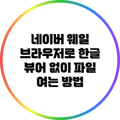 한글 문서 파일을 열 때, 보통은 한글 뷰어라는 프로그램이 필요하다고 생각할 수 있어요. 하지만 요즘은 다양한 웹 브라우저 기능을 활용하여 굳이 별도의 뷰어 프로그램 없이도 한글 파일을 열 수 있는 방법이 있습니다. 오늘은 특히 네이버 웨일 브라우저를 활용하는 방법을 자세히 알아볼게요.
