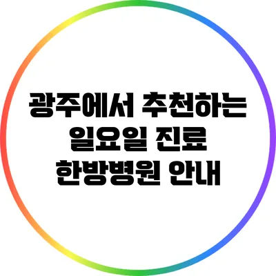 A1: 광주에서 일요일 진료를 제공하는 한방병원으로는 ‘광주 한방병원’, ‘행복한 한의원’, ‘광주 가정한의원’이 있습니다.