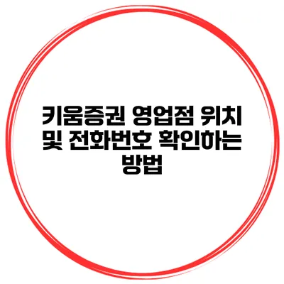 키움증권의 영업점을 찾고 있나요? 고객님이 헷갈리지 않도록, 영업점의 위치와 전화번호를 확인하는 방법을 알려드릴게요. 특히 금융 거래를 하시는 분들에게는 필수적인 정보가 될 것입니다.
