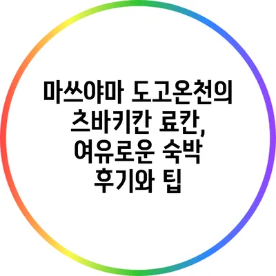 마쓰야마 도고온천의 츠바키칸 료칸, 여유로운 숙박 후기와 팁